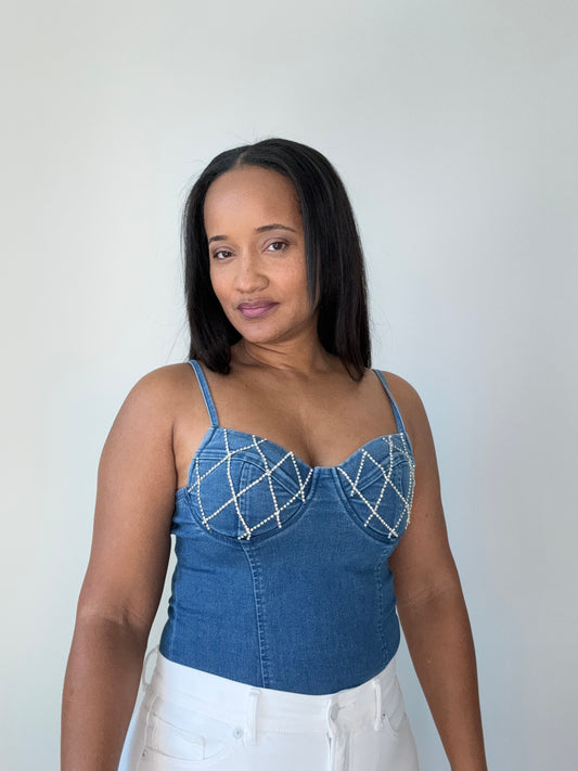 Sold outPEARL EMBELLISHED DENIM DRESS